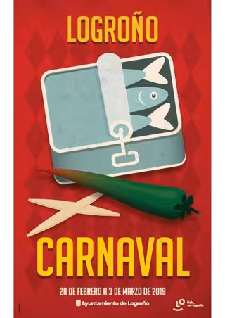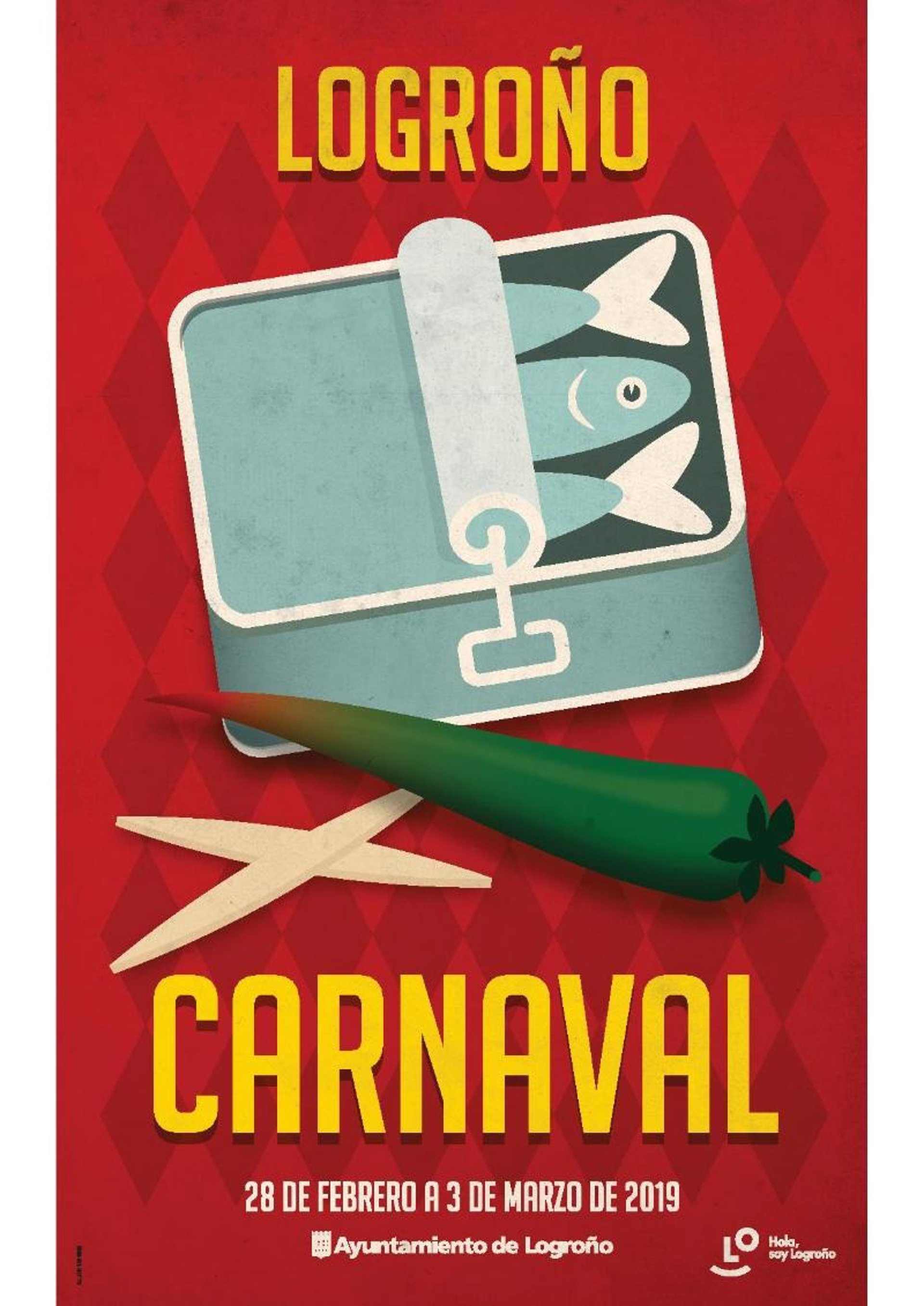 El cartel de Carnaval 2019, que se celebrará del jueves 28 de febrero al 3 de marzo de 2019, está basado en el tradicional acto del Entierro de la Sardina, último episodio de las fiestas y que el año pasado por vez primera el Ayuntamiento decidió conceder más importancia con la incorporación de una representación en la Plaza del Mercado.