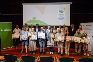 El presidente de Fundación Caja Rioja, Pablo Arrieta; la consejera de Agricultura, Ganadería, Mundo Rural y Medio Ambiente, Noemí Manzanos; la responsable de AgroBank en La Rioja de la Territorial Ebro de CaixaBank, Rocío Sigüenza; el presidente del Consejo Regulador de la D.O.Ca Rioja, Fernando Ezquerro, han entregado esta tarde los premios a los vinos ganadores de la edición número 35 del 'Concurso de Vinos de Cosechero de La Rioja' en las modalidades de vinos tintos, blancos y rosados de la cosecha 2024 y la 3ª edición del 'Concurso de Vinos de Pueblo'.