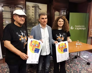 El gerente de Fundación Caja Rioja, Carlos Fuentes, y los responsables de la Escuela, Irene García y Eusebio Díez, han presentado este lunes el programa de la jornada, con la que "se quiere llevar -ha afirmado García- la música a espacios donde no es habitual que se escuche".