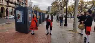 Una vez concluidas las palabras del director del Festival han hecho su aparición pública los protagonistas del cartel de este año, Ups y Nop, acompañados de los gaiteros de Albelda. Los 'marcianos' ha intentando bailar una piezas tradicionales riojanas junto a niños del colegio de Adoratrices, que se han unido a la presentación.