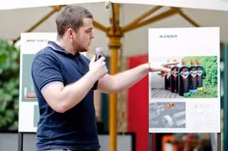 Javier Calavia es el autor de 'W-Ender', un envase gracias al que ha ganado el primer premio, dotado con 2.500 euros. Pensada para un público aventurero, se inspira en las cantimploras y en las botas de trekking. Se caracteriza por su solidez y por su look deportivo. En ella destacan un tapón que imita los de los envases de agua usadas por ciclistas y una base de goma personalizable que puede ser reciclada.