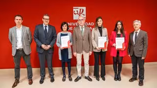 En la entrega de premios han participado Juan Carlos Ayala Calvo, rector de la Universidad de La Rioja, José Ángel Pérez Álvarez, director Territorial de Ibercaja en La Rioja, Burgos y Guadalajara; Jorge Sicilia Espuny, gerente Territorial-Dirección Territorial Norte de Ibercaja; Carlos Lagunas Baroja, vicepresidente de AREF y consejero Delegado de Conservas Cidacos; Ernesto Gómez Tarragona, director de AREF; y Eduardo Rodríguez Osés, Director de la Cátedra Extraordinaria de la Empresa Familiar en la Universidad de La Rioja.