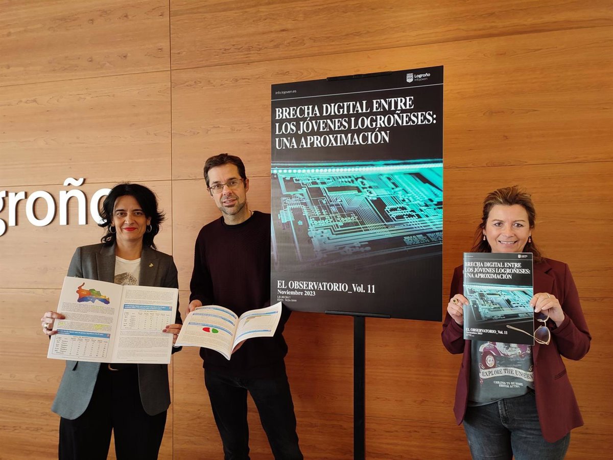 Las concejalas de Familia, Servicios Sociales y Discapacidad, Patricia Sainz, y de Juventud, Laura Arrieta, y el sociólogo Luis Alberto Sanvicéns presentan el informe 'Brecha digital en los jóvenes logroñeses' - AYUNTAMIENTO DE LOGROÑO