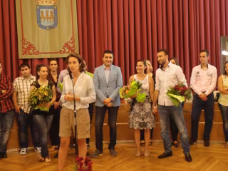 Eva Rodríguez y David José Fernández han sido proclamados esta mañana oficialmente Vendimiadores de las Fiestas de San Mateo 2014, en un acto celebrado en el Salón de Plenos y que ha contado con la presencia de la alcaldesa de Logroño, Cuca Gamarra, quien ha deseado suerte a los elegidos.