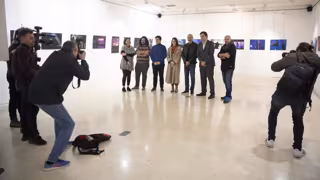 El director general de Cultura, Roberto Iturriaga, la concejal delegada de Cultura del Ayuntamiento de Logroño, Rosa Fernández; el director ejecutivo de UNIR, Javier Galiana; y el director del grado de fotografía de UNIR y comisario de la muestra, Alfonso Da Silva; han inaugurado la exposición de fotografía 'La Imagen Sonora' que, desde hoy, 2 de abril, y hasta el 16 de abril, acoge la sala de exposiciones de la Biblioteca de La Rioja.