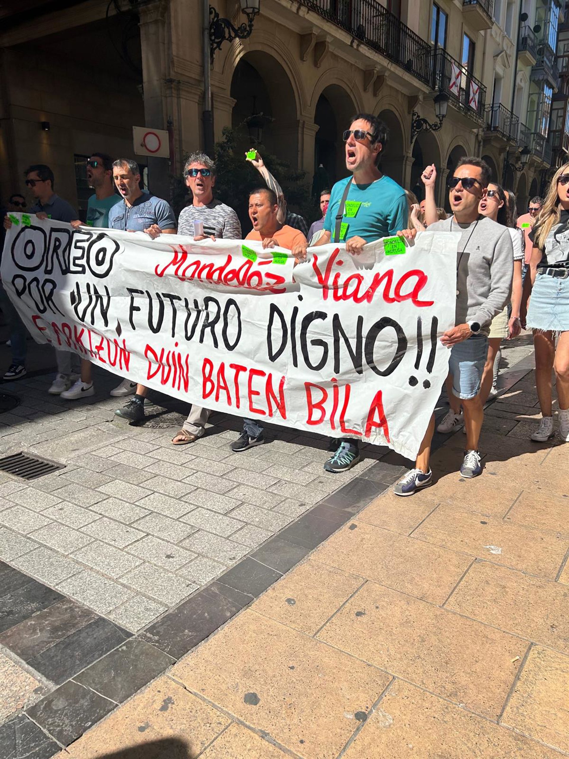 Los fabricantes de galletas Oreo y Chips Ahoy, pertenecientes al Grupo Mondélez, se han manifestado hoy por el centro de Logroño reclamando un futuro digno. "Sin nosotros y nosotras no hay trabajo, no hay producción y no hay riqueza", ha clamado en declaraciones a los medios de comunicación el representante de CC.OO, Asier Macho.