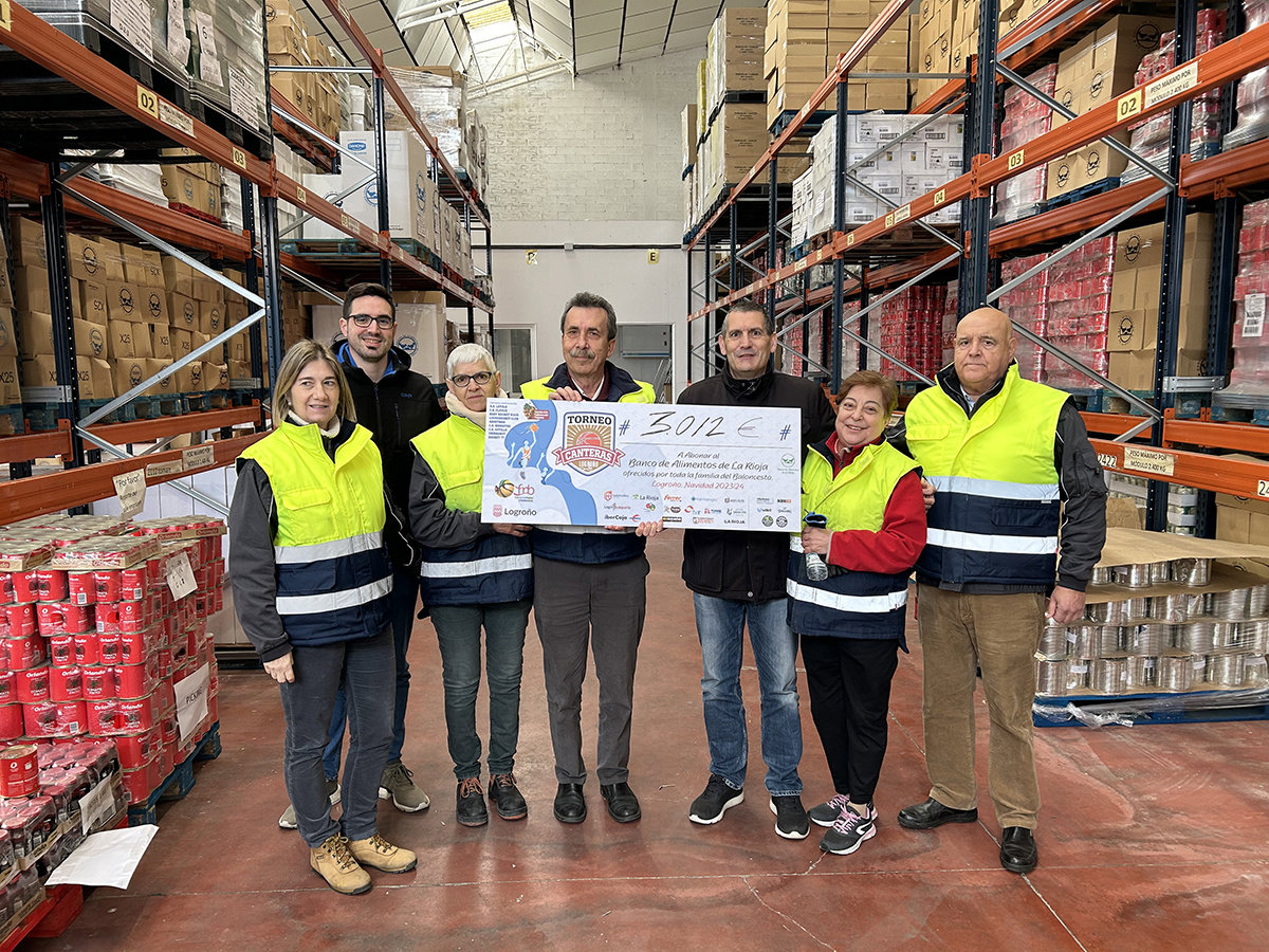 A ello se ha sumado la aportación de 1.000 euros por parte del Patronato de la Fundación, lo que ha significado un total de 3.012 euros que entregaron al Banco de Alimentos, con presencia de Fernando Verano, presidente de la Federación Riojana de Baloncesto; Pablo Abellán, vicesecretario General y David Varas, director deportivo, haciendo entrega del cheque al presidente del Banco de Alimentos, José Manuel Pascual Salcedo, quien agradeció "la entrega de este dinero, de manera especial los que practican el baloncesto en sus fases más primarias, niños y niñas, que seguramente habrán aprendido que la solidaridad es un valor que debemos mantener las personas a lo largo de nuestras vidas. En nuestro caso, este dinero recibido lo convertiremos en alimentos para entregarlos a esa parte de la sociedad más desprotegida".