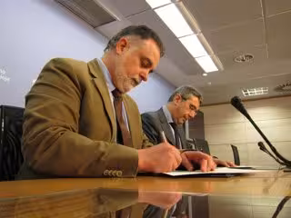 El consejero de Obras Públicas, Política Local y Territorial, Antonino Burgos, ha suscrito esta mañana un convenio de colaboración con el presidente de la Federación Riojana de Municipios, Roberto Varona, en virtud del cual el Ejecutivo riojano aporta 145.000 euros a esta organización para sufragar sus gastos de organización y funcionamiento, así como las actividades de apoyo a las entidades locales que realice durante 2013.
