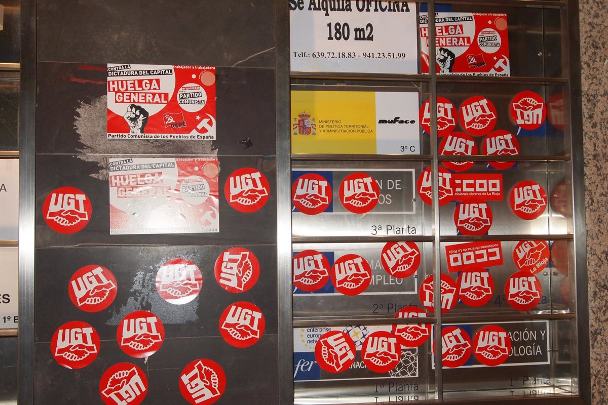La Federación de Empresarios de La Rioja (FER) ha acusado este viernes a los sindicatos UGT y COO de que "acosan a los empresarios empapelando el portal de la FER con pegatinas, saltándose a la torera todos los límites del respeto y de la convivencia", por lo que avanza que les enviará la factura de la limpieza del portal.