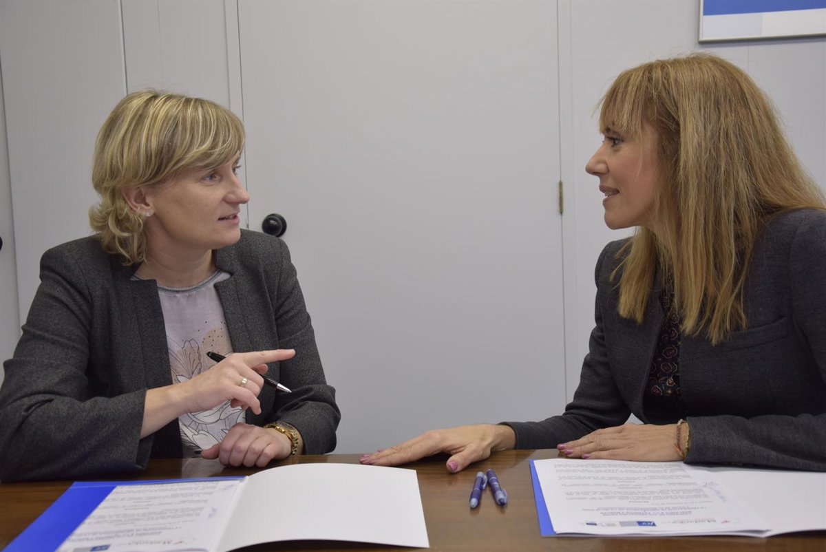 La responsable del departamento de Internacional de la Federación de Empresarios de La Rioja, Sheila Argáiz, y Dorota Maslanka Kubik, directora del despacho MASLANKA & Co. Patentes y Marcas, han renovado un año más el acuerdo de colaboración para gestionar patentes y marcas en las PYMES.