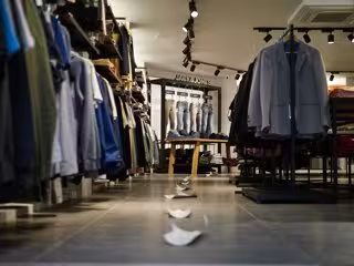 Detalle de los carteles informativos y señales de suelo del interior de una tienda de moda - Eduardo Sanz / Europa Press