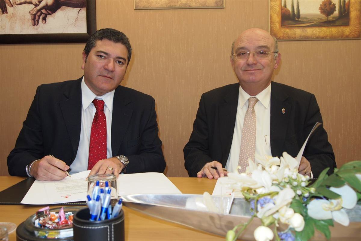 El presidente de la FER, Julián Doménech, y el director de ventas de la Zona Norte y de Aragón de Vodafone, Héctor Botas, han suscrito el acuerdo.