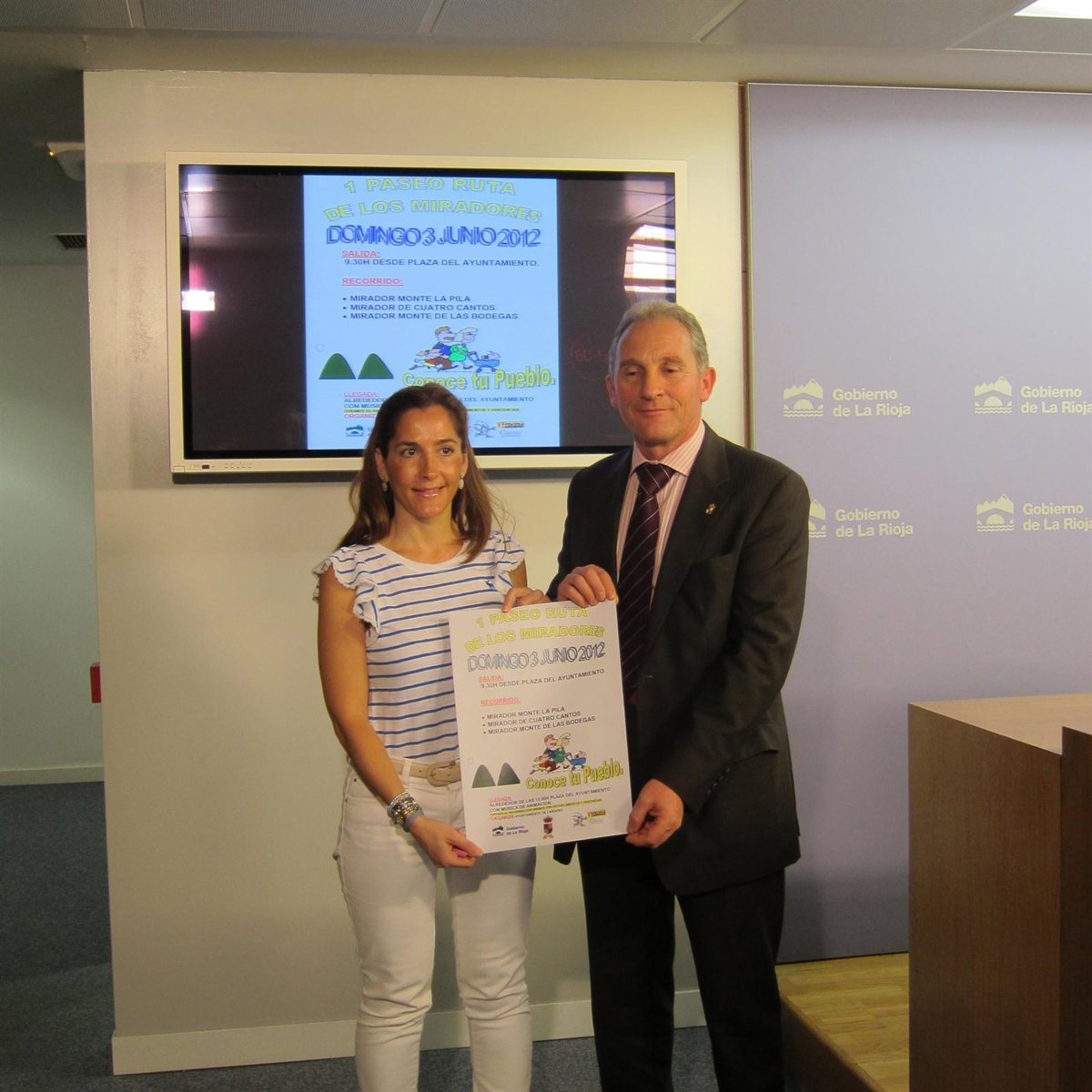 La directora general de Turismo, Mónica Figuerola, acompañada del alcalde de Lardero, Juan Antonio Elguea, ha presentado esta mañana la nueva Ruta de los Miradores de Lardero. La actividad tendrá lugar este domingo y según Figuerola "es un propuesta de turismo de naturaleza para toda la familia".