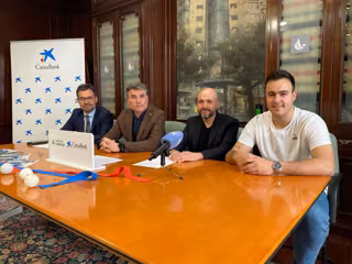 El gerente de Fundación Caja Rioja, Carlos Fuentes; el vicepresidente de la Federación Riojana de Pelota y el director de Banca de Instituciones de La Rioja de CaixaBank, Íker Muguruza, han presentado esta mañana la 51 edición del Torneo Fundación Caja Rioja de Pelota, una cita que comienza el 15 de marzo y que concluirá en el mes de mayo.