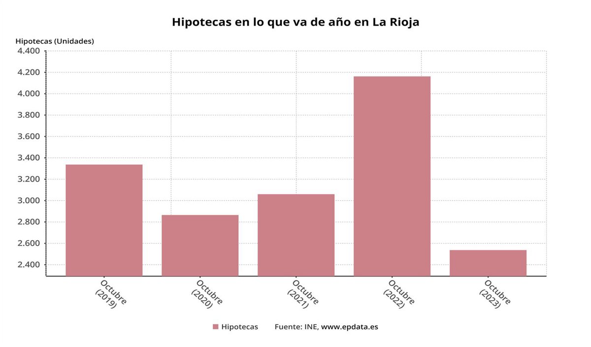 Plantilla EpData - La firma de hipotecas en La Rioja baja un 53,38% tras empeorar su evolución interanual en noviembreEuropa Press - EpData