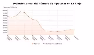 De este modo, La Rioja se sitúa como la segunda comunidad donde más cayeron las hipotecas, solo superada por Navarra que cayó un 9,4 por ciento. En el extremo opuesto se situó Castilla-La Mancha donde subieron un 17,9 por ciento.