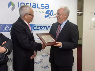 Asimismo, José Ignacio Ceniceros, que ha entregado al presidente de Inrialsa, Ángel Martínez Ubis, una placa conmemorativa de este aniversario, ha destacado el origen "100% riojano" de esta empresa familiar que "afronta un futuro lleno de retos".
