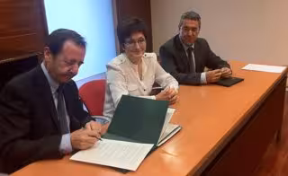 El consejero de Obras Públicas, Política Local y Territorial, Antonino Burgos, ha firmado hoy el contrato para acometer la segunda fase de mejora de la travesía de Alfaro en la carretera LR-288.