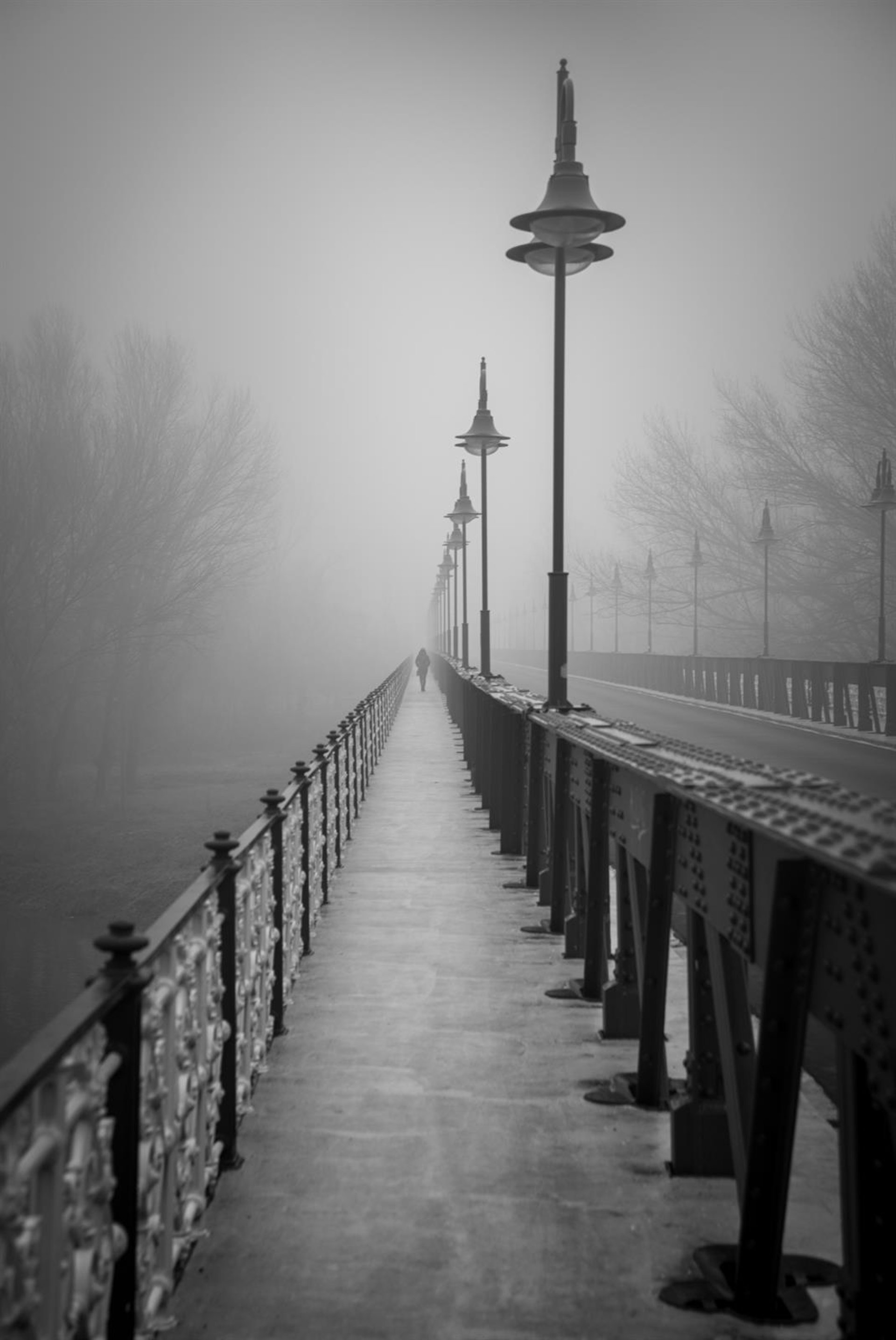El fotógrafo riojano Edu San Vicente ha sido seleccionado como finalista en el Concurso Internacional de Fotografía PhotoFUNIBER24 con su obra paseando entre la niebla, una fotografía tomada el 24 de enero de 2024 en el Puente de Hierro en la capital riojana.