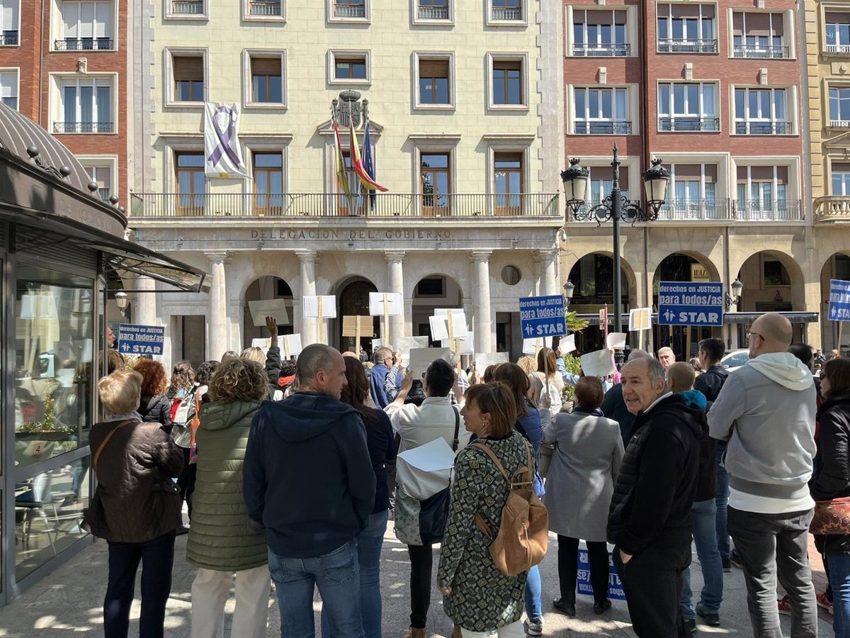 En la mañana de hoy, los funcionarios de Justicia han vuelto a concentrarse, frente a la Delegación del Gobierno, a las puertas de que los paros parciales se conviertan, el próximo lunes, 22 de mayo, en huelga indefinida.
