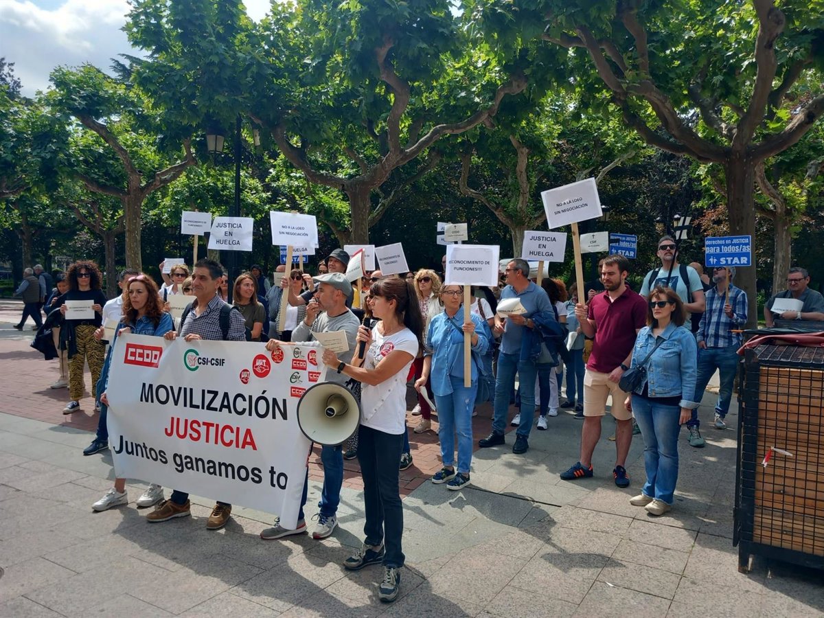 "Aquí seguimos y aquí vamos a seguir". Los funcionarios de Justicia prosiguen con su huelga indefinida y no descartan endurecer medidas si el Ministerio "no se sienta a negociar con ellos" mejoras en las condiciones y en las retribuciones salariales. Además, recuerdan al Gobierno que aunque hayan convocado elecciones "se puede seguir trabajando" porque "no están en funciones".
