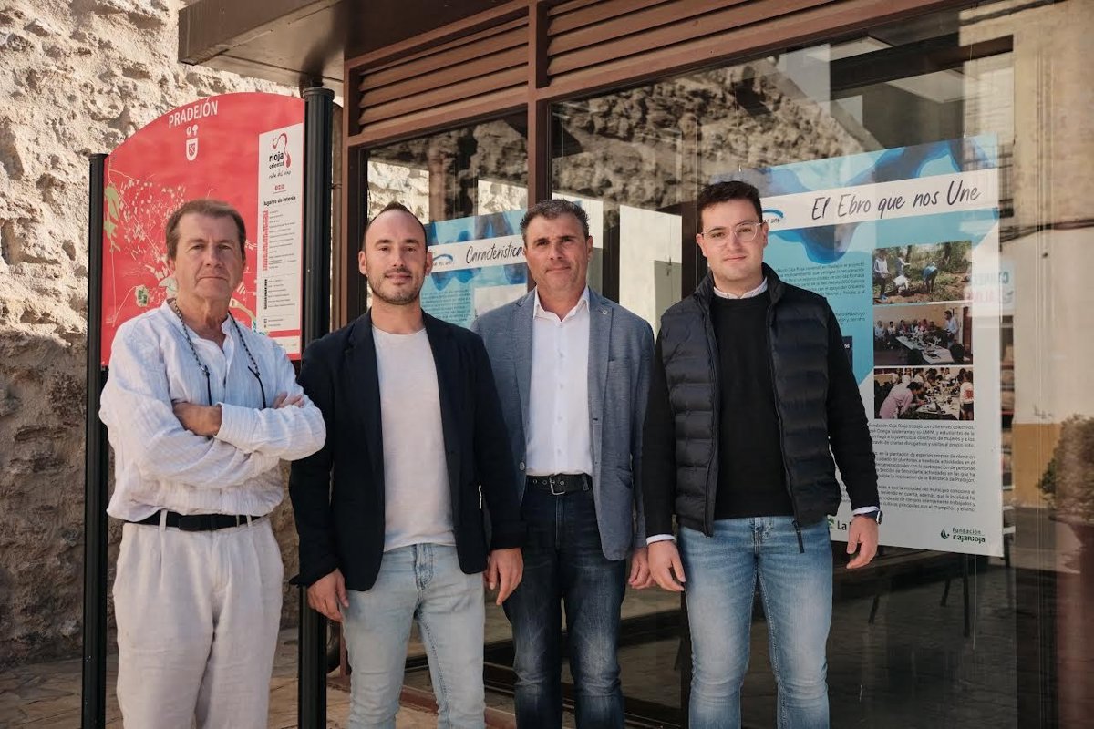 El gerente de Fundación Caja Rioja, Carlos Fuentes, y el alcalde de Pradejón, Alfonso Pousada, han inaugurado este jueves la exposición 'El Ebro que nos une', que describe el trabajo de sensibilización y concienciación realizado durante dos años en en un soto del Ebro situado dentro del término municipal de la localidad.
