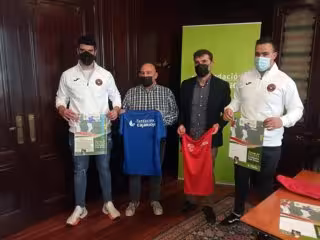 El gerente de la Fundación Caja Rioja, Carlos Fuentes, y el presidente de la Federación Riojana de Pelota, Juan José Belmonte, han presentado este jueves, 24 de marzo, la edición número 48 del Torneo de Pelota Fundación Caja Rioja, enmarcado en las iniciativas promovidas por la entidad para desarrollar nuestro deporte base. Los han acompañado Álvaro Untoria, director deportivo de la federación y Pelotari profesional y Óscar Lerena Campeón del Mundo Sub 22.