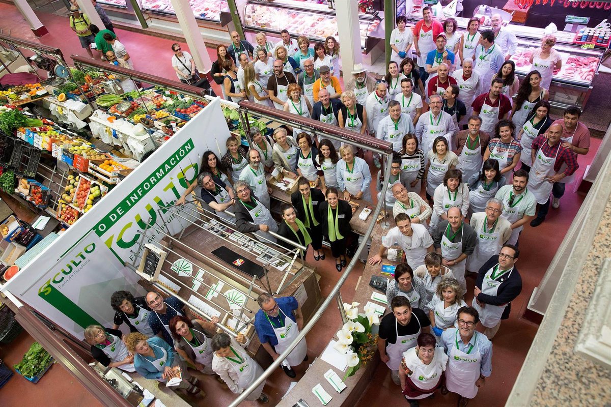 La elección de la Plaza de Abastos de Logroño como ubicación de la Feria ha sido destacada con una nota de 8,8 de media por los galeristas que se han familiarizado con la actividad del Mercado y compartieron con todos los comerciantes los días de la Feria; destacando la fotografía conjunto que comerciantes, galeristas, artistas y equipo de la Feria se hicieron en la planta baja del mercado ataviados todos con el delantal con el logo de SCULTO que todos ellos lucieron durante la Feria en sus puestos de venta.