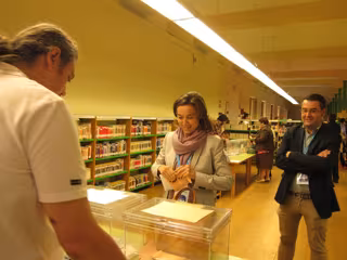 Nada más llegar, Gamarra ha saludado a los miembros de la mesa electoral y ha querido agradecer también "el trabajo que hoy ejercen presidentes y vocales por toda la comunidad autónoma que hacen posible esta jornada electoral".