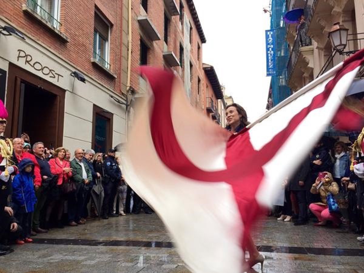 La alcaldesa en funciones de Logroño, Cuca Gamarra, ha dedicado hoy los tradicionales 'banderazos' a los logroñeses del 1521; al Teatro Bretón y a los 27 concejales de la última Corporación.