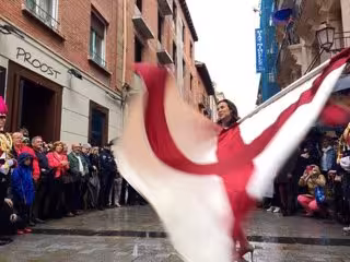 Pero antes de llegar al tercer 'banderazo' la comitiva ha hecho su parada más importante. En la Plaza del Parlamento esperaba a la alcaldesa el Grupo de Danzas de Logroño, que ha bailado la Jota de Logroño.