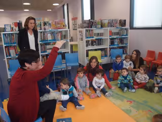 Con motivo de la celebración del tercer aniversario, la Biblioteca ha organizado numerosas actividades como la exposición o sesiones de cuentacuentos. Precisamente ésta es la actividad que ha llevado a un grupo de alumnos de 2 y 3 años de la Guardería 'Cuenta Cuentos' a acercarse a la biblioteca, donde han coincidido con la alcaldesa y han aprovechado para transmitirle sus impresiones.