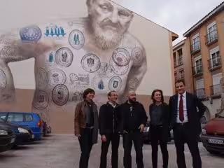 La alcaldesa de Logroño, Cuca Gamarra, ha contemplado esta mañana el mural "Sello Tatoo", que los artistas locales Carlos Corres y Carlos López Garrido han pintado en una medianera del Casco Antiguo. Ésta es la primera obra del proyecto "Ruta Mural Jacobea" que el Ayuntamiento ha impulsado con el objetivo de "convertir la ciudad en un espacio abierto al arte y a la creatividad".