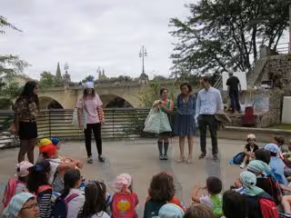 Gamarra ha participado esta mañana en una actividad que vincula la programación de las ludotecas infantiles con la novedosa iniciativa de turismo familiar conocida como 'Mirar muy de cerca Logroño' y con el Camino de Santiago a su paso por Logroño.