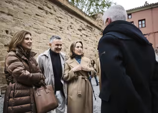 Cuca Gamarra, junto al alcalde de Logroño, Conrado Escobar, y otros compañeros del PP, hoy en la capital riojana. - EUROPA PRESS