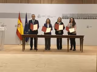 La consejera de Agricultura, Ganadería, Mundo Rural, Territorio y Población, Eva Hita, y el director general de Política Territorial, Urbanismo y Vivienda y gerente del Instituto de la Vivienda de La Rioja (IRVI), Javier Caldito, han asistido esta mañana en Madrid a la firma del acuerdo del Gobierno de La Rioja con el Ministerio de Transportes, Movilidad y Agenda Urbana (MITMA) para la construcción de 72 viviendas de protección pública energéticamente eficientes para el alquiler social en los municipios de Alfaro, Calahorra y Torrecilla en Cameros, acto de firma presidido por la ministra de Transportes, Movilidad y Agenda Urbana, Raquel Sánchez.