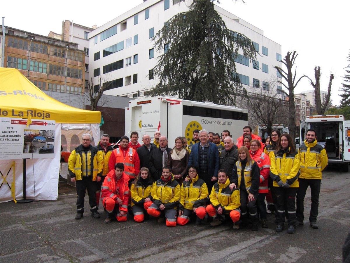 Un acto informativo que se ha desarrollado en el aparcamiento del Palacio de Gobierno riojano, donde Cruz Roja ha desplegado equipos de emergencia inmediata, sanitaria y logística.