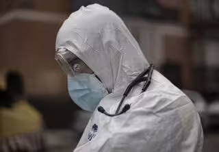 Un trabajador de una UVI móvil del SUMMA 112 con el EPI asiste un domicilio durante una jornada de trabajo, en Madrid (España), a 29 de enero de 2021. - Eduardo Parra - Europa Press