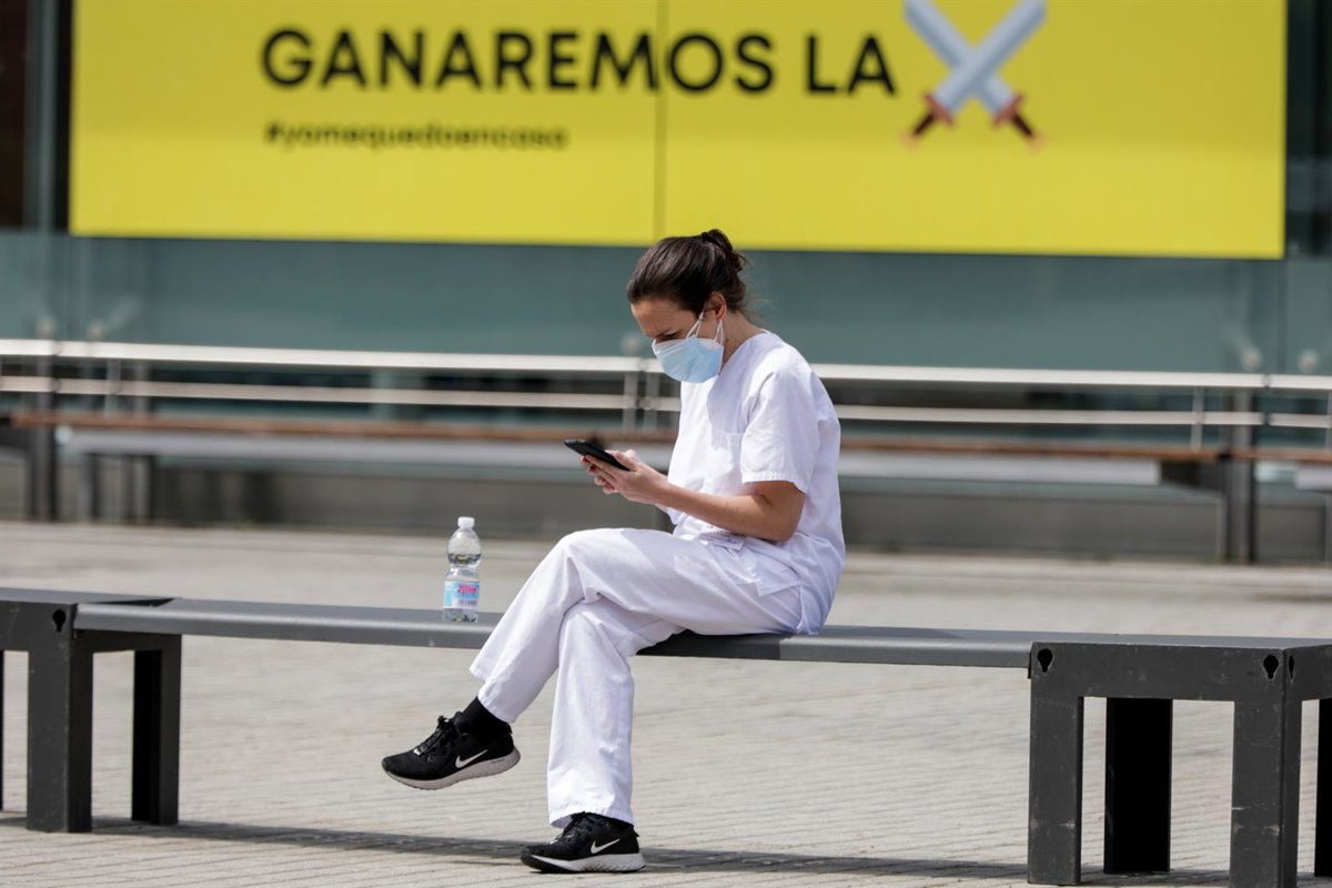 Una sanitaria descansa en el exterior del hospital de campaña de IFEMA - Jesús Hellín - Europa Press