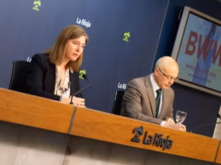 La consejera de Agricultura, Ganadería, Mundo Rural y Medio Ambiente, Noemí Manzanos, y el director general de Desarrollo Rural, David Martín, han presentado este viernes la novedosa participación de la Comunidad Autónoma de La Rioja en este salón profesional del vino que se organiza en el marco de la estrategia promocional del producto agroalimentario riojano impulsada durante el 2025.