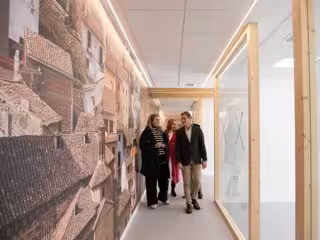 Uno de los elementos singulares del centro es el revestimiento mural que recorrerá el pasillo principal, concebido para poner en valor la identidad y el patrimonio de la comarca. Se trata de un fotomontaje paisajístico que integra referencias como el urdido del calzado, los frescos de la basílica de Nuestra Señora del Monte, la zona de San Gil, el área recreativa de Pozo Largo, la imagen del Castillo-Fortaleza sobre la peña de San Antonio o el característico cortado rocoso que perfila el 'skyline' del municipio. Las imágenes están pensadas para despertar recuerdos y activar la memoria afectiva de las personas usuarias, reforzando su vínculo con el territorio y generando sensaciones de familiaridad, arraigo y pertenencia en un entorno que busca ser cercano y emocionalmente acogedor.