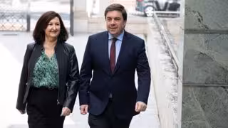 El consejero de Empleo, Alberto Galiana, acompañado de la directora general de Empleo, Cristina Salinas, ha presentado hoy, en rueda de prensa, las ayudas, que se distribuyen en dos bloques ya que se destinan tanto a mayores como menores de treinta años.