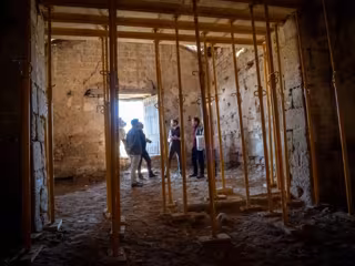 El presidente del Gobierno de La Rioja, Gonzalo Capellán, junto al director general de Cultura, Roberto Iturriaga, ha visitado este domingo, 23 de febrero, las obras de restauración de la cubierta de la nave de la ermita de San Román de Ajuarte, una de las dos intervenciones que está impulsando el Gobierno de La Rioja en Casalarreina.