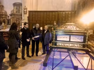 Durante su visita, Gonzalo Capellán ha destacado la importancia de esta iglesia que alberga en la parte baja del coro el sepulcro del Cristo yaciente, realizado por Juan Félix de Camporredondo en madera policromada en oro en 1722.