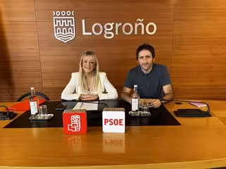 La concejal socialista, Beatriz Nalda, y el concejal, Álvaro Foncea, en comparecencia de prensa - PSOE LOGROÑO