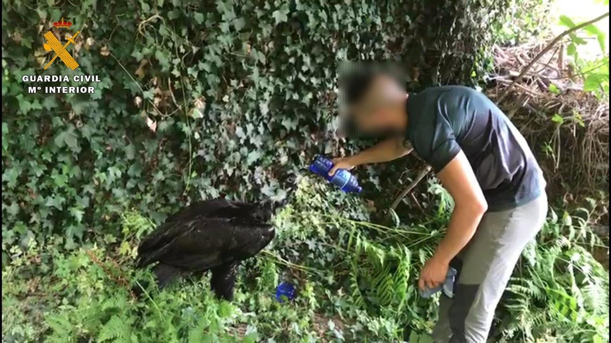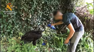 Agentes del Centro de Adiestramientos Especiales (C.A.E.) de la Guardia Civil en La Rioja han auxiliado a un ejemplar de buitre negro que se encontraba extenuado, deshidratado, hambriento e impedido para remontar el vuelo.