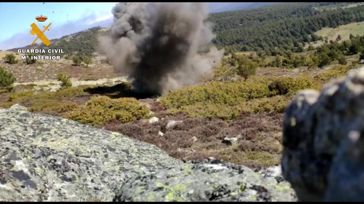 La Guardia Civil en La Rioja ha destruido un proyectil de artillería, presumiblemente de la época de la Guerra Civil española, que fue localizado semienterrado en la zona del barranco del Río Lumbreras y la cola del Embalse de San Andrés (Sierra de Cebollera).