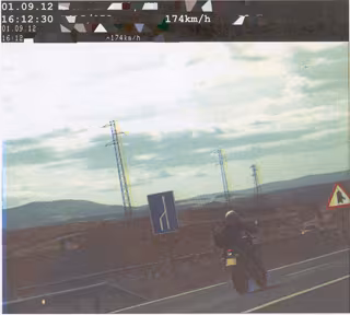 Esta persona fue sorprendida por un radar móvil de la Guardia Civil del Subsector de Tráfico en La Rioja, cuando circulaba con su motocicleta por la A-12, termino de Nájera, a 174 kilómetros por hora, estando la velocidad limitada por señal vertical en 80 Km/h.