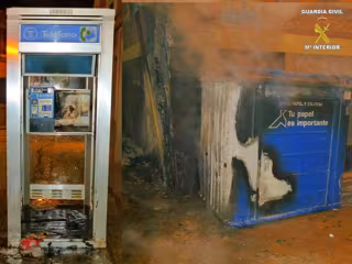 Los cuatro primeros incendios se llevaron a cabo durante la madrugada del 13 al 14 de diciembre, cuando autor/es desconocidos prendieron fuego a tres contenedores y una cabina telefónica. Las llamas de estos incendios ocasionaron daños en otros tres contenedores metálicos, un locutorio, una herboristería, un bar y un vehículo, así como en la señalización vertical, instalación eléctrica y pavimento de la vía pública.