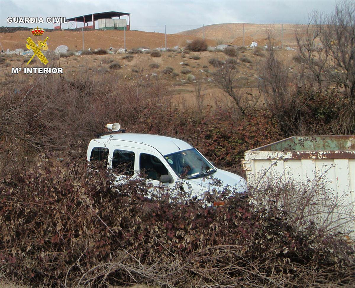 En la tarde-noche del día 27, agentes en labores de vigilancia establecidas en diferentes puntos dominantes de las instalaciones, observaron como dos individuos ocultaban una furgoneta entre la maleza, para acto seguido introducirse en el interior del vertedero.